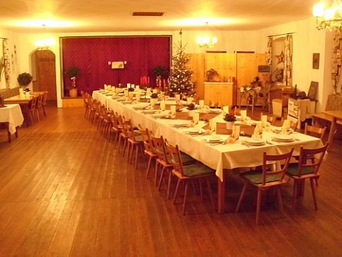 Unser großer, rustikaler Saal - ein Schmuckstück - wird je nach Jahreszeit liebevoll dekoriert und bietet Platz für bis zu 100 Gäste. Kommunionen, Geburtstage, Weihnachtsfeiern, Taufen aber auch Tagungen und Seminare finden hier statt.